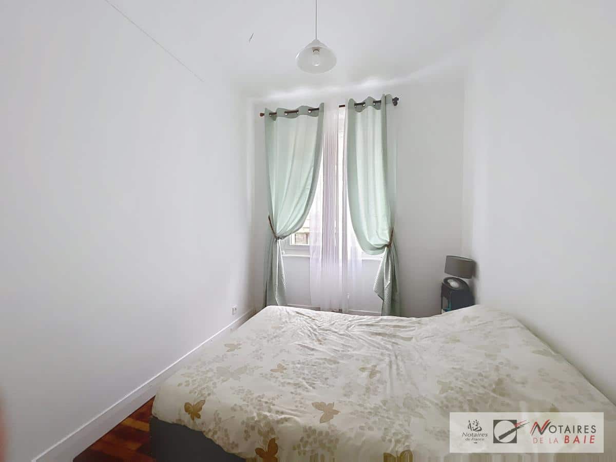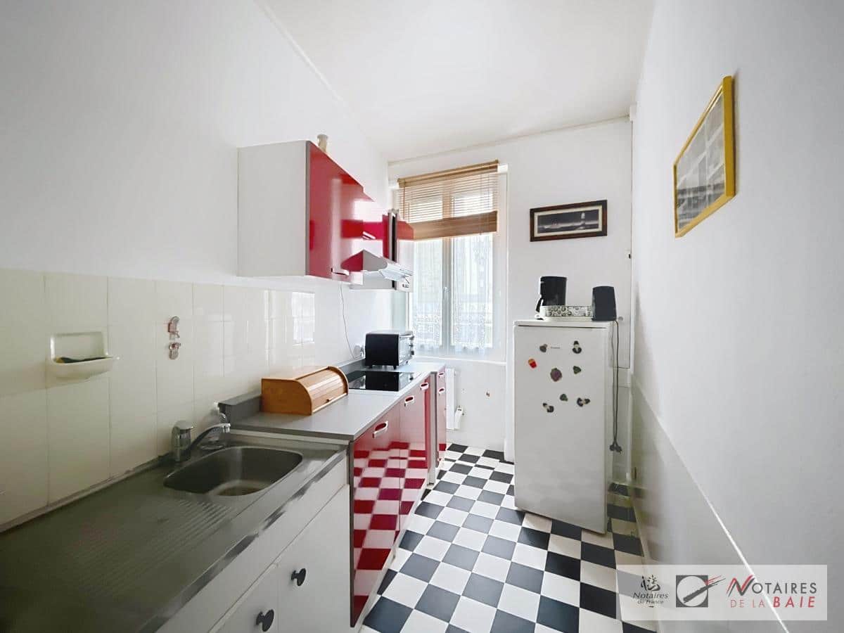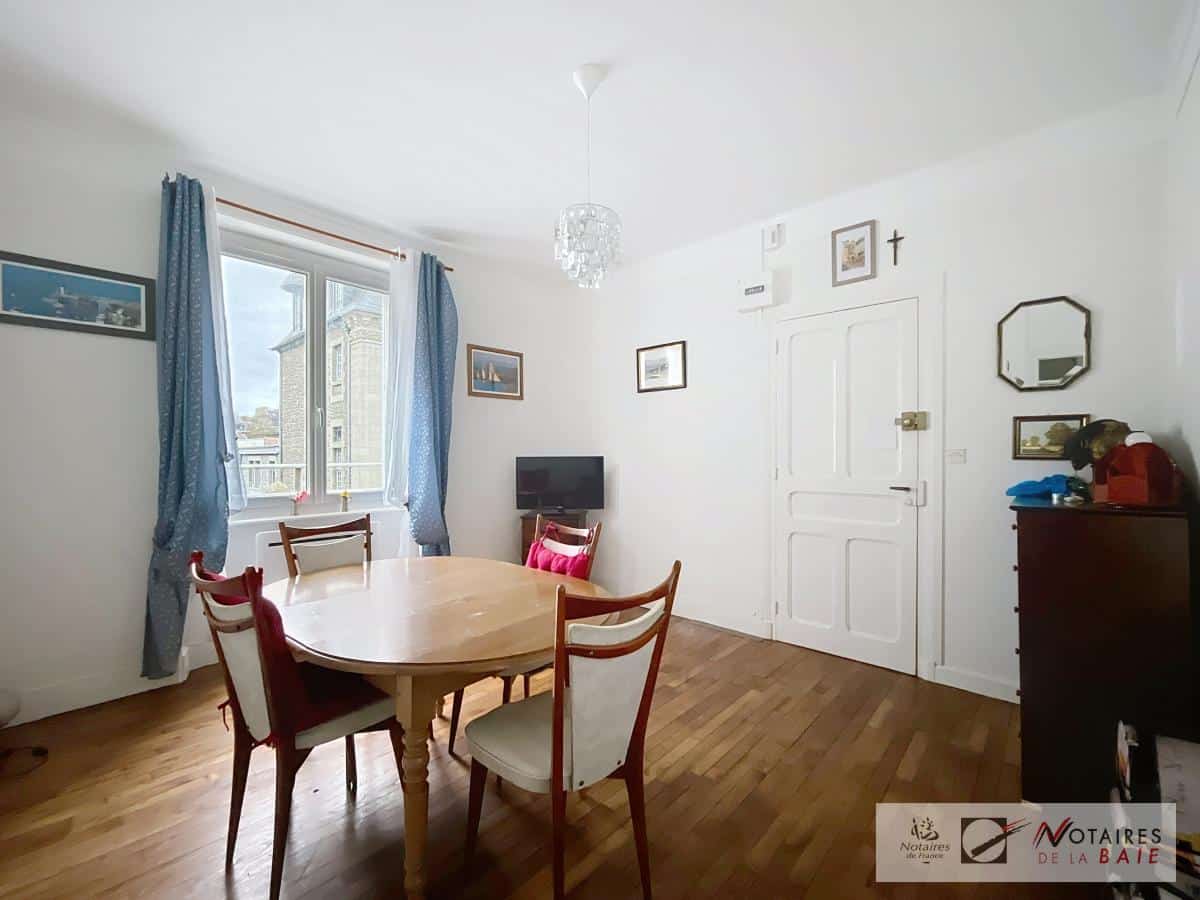 Au premier étage, un appartement comprenant une pièce de séjour, une cuisine, une chambre, un espace bureau, salle d'eau avec w.c. Une cave et la moitié indivise d'un ancien w.c. à mi-étage.