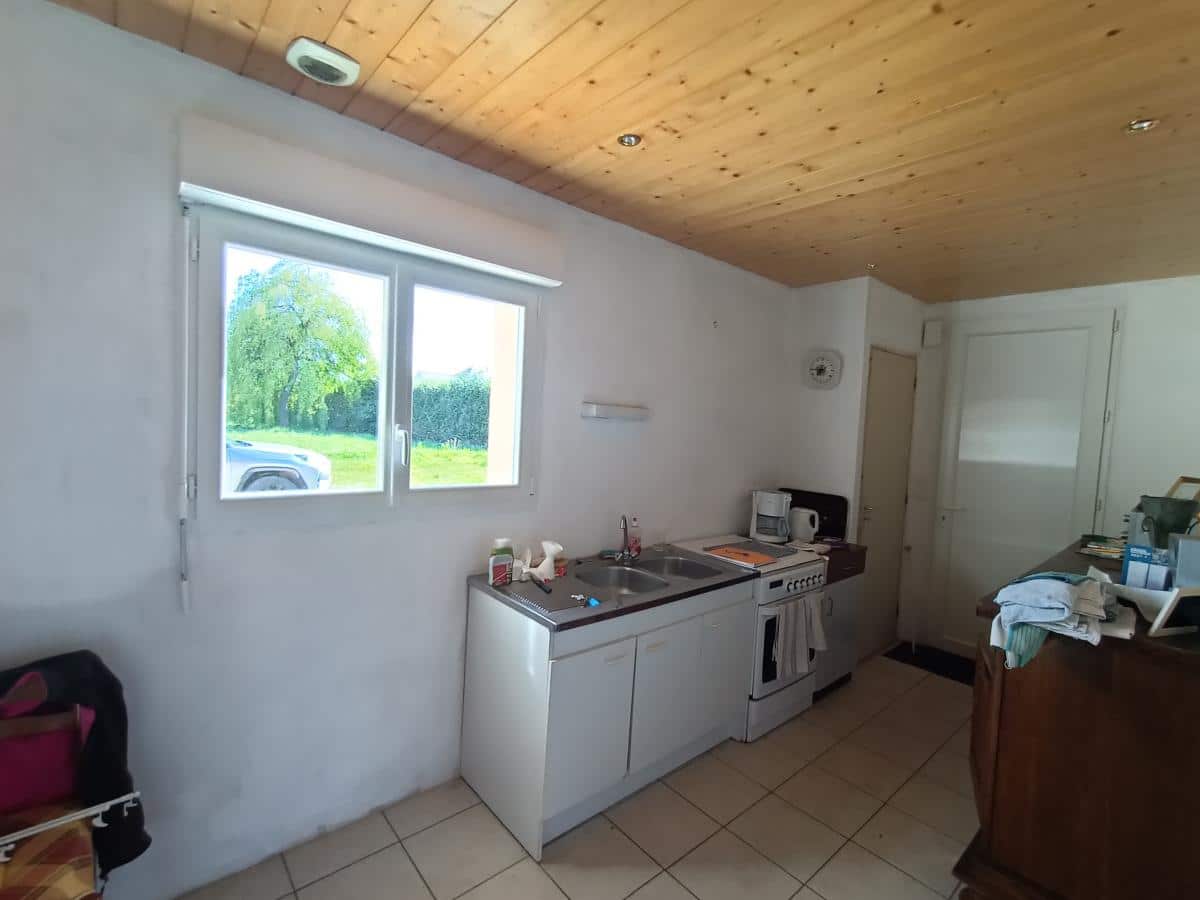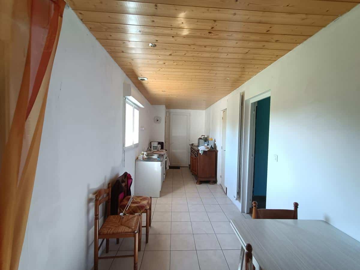 Elle est composée au rez-de-chaussée d’une cuisine, d’une salle à manger, d’une salle d'eau avec w.c., et d’un wc indépendant.
