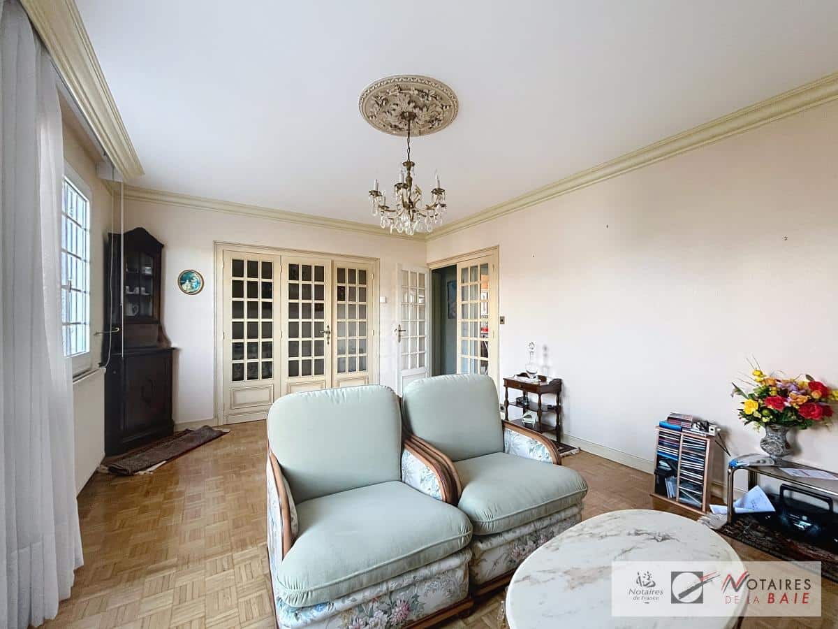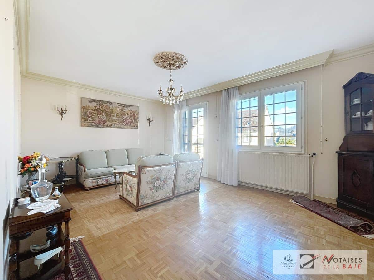 Maison située dans un quartier au calme et proche des écoles, elle se compose au rez-de-chaussée, entrée, bureau, chambre, cave, chaufferie, garage, à l'étage, palier, salon, salle à manger, cuisine, salle de bains, une chambre et W.C. ;