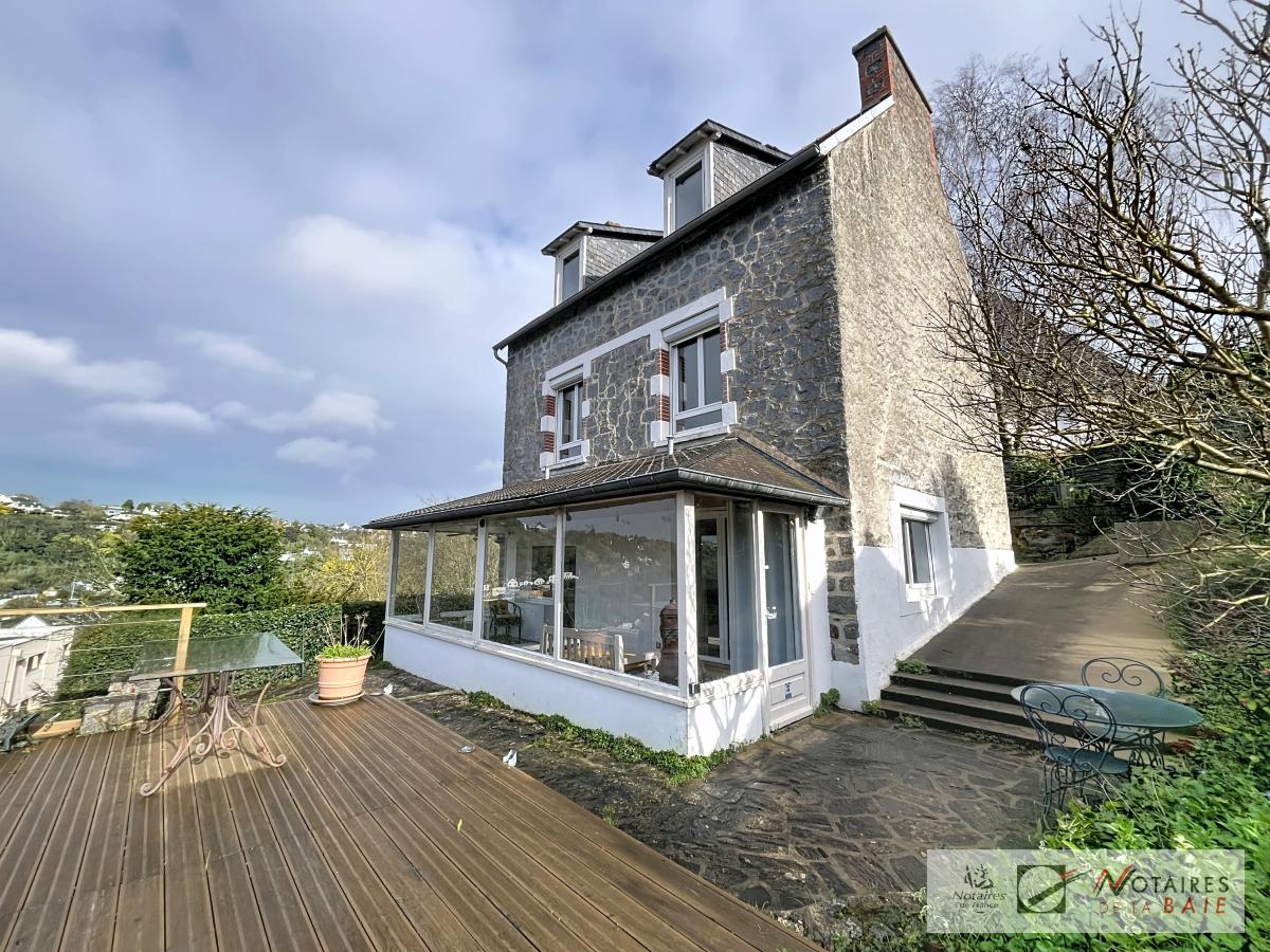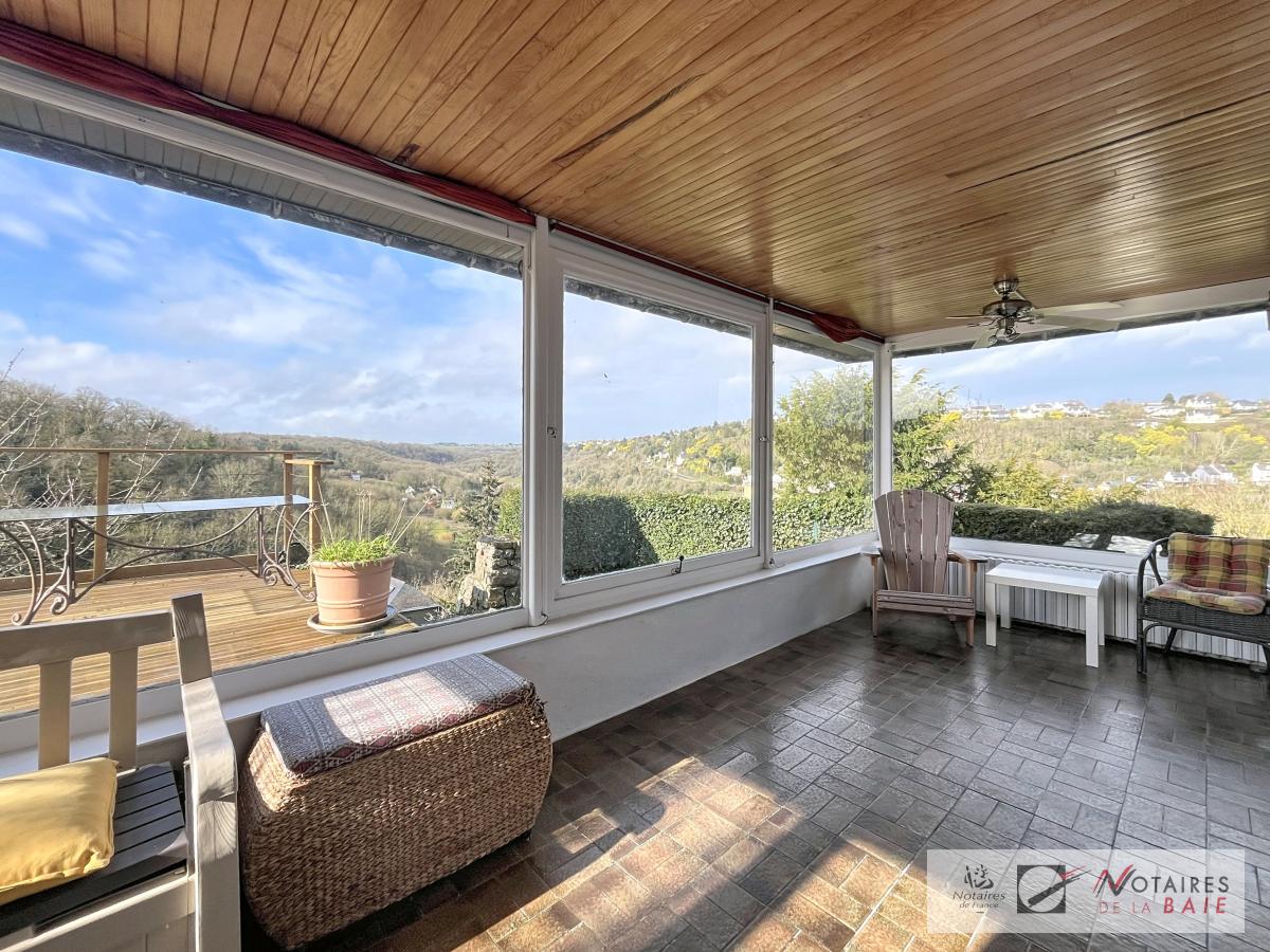Maison en pierres des années 30 située au calme d'une impasse avec vue sur la vallée, elle se compose, au rez-de-chaussée, entrée par une grande véranda exposée au sud/ouest, salle à manger/salon avec accès sur une cuisine ouverte aménagée et équipée, un espace bureau, le tout donnant sur la véranda avec une grande terrasse donnant sur la vallée, buanderie avec WC, accès au garage, à l'étage, 3 chambres, salle de bains et WC, au second niveau, 4 chambres à rénover avec isolation à prévoir. Beaucoup de charme pour cette maison.