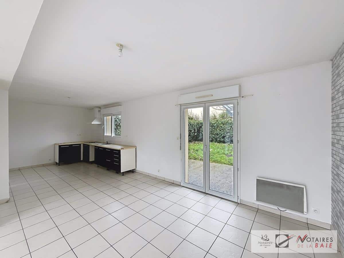 Sur la commune de TREGUEUX, une maison comprenant au rez-de-chaussée : entrée, séjour avec cuisine ouverte, arrière cuisine, garage et wc. A l’étage : palier, trois chambres, salle de bains avec wc. Jardin clos.